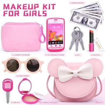 Pretend Play Toddler Girl Purse with Makeup Toys Set, Little Girls Purse Toys for 3 4 5 6 7 Year Old Girl Gifts, Kids Purse for Christmas, Birthday Gifts for Ages 3-5 4-5 6-8 Pink