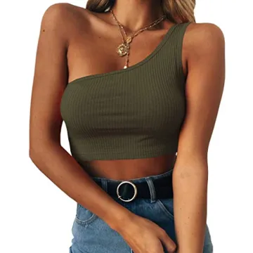 Stylish One Shoulder Crop Tops for Women - PRETTODAY Women's Sleeveless Tee