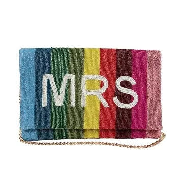 Pretty Robes MRS Clutch Purse - Beaded Rainbow Bridal Clutch for Bachelorette & Engagement Gifts