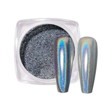 PrettyDiva 1g/Jar Laser Holographic Nail Powder Rainbow Chrome Nail Powder Manicure Pigment for Nail Art