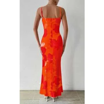 Show more The PRETTYGARDEN Adjustable Straps Sleeveless Summer Dress is a stunning addition to any woman's closet, perfect for the warmer months of 2025. This vibrant floral mesh bodycon maxi dress in a delightful orange-red big floral pattern seamlessly combines elegance and comfort. Crafted from a premium soft and stretch fabric, this dress hugs your curves while providing unmatched comfort for day or night wear. With its adjustable spaghetti straps, this summer dress offers a customized fit that caters to various body shapes, allowing you to showcase your feminine silhouette effortlessly.