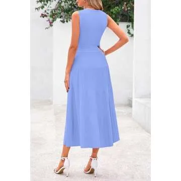 Show more Introducing the PRETTYGARDEN Spring Casual Dresses for Women 2025, your perfect companion for a stylish and comfortable summer. This exquisite midi sleeveless A-Line pleated cocktail dress comes in a soft sky blue that embodies the essence of spring. Crafted with a blend of 60% Polyester and 40% Viscose, the fabric is not only lightweight but also highly stretchy, ensuring a snug yet breathable fit. Designed to flatter every figure, the high-waisted silhouette combined with the pleated design enhances your natural curves, creating an alluring hourglass shape. This dress is perfect for a variety of occasions, making it a versatile addition to your wardrobe.
