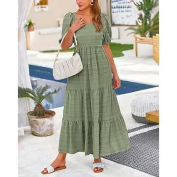 Show more Introducing the epitome of summer elegance, our Bohemian Tiered Midi Dress designed exclusively for modern women. Crafted from high-quality polyester, this dress feels luxuriously soft against your skin, ensuring a comfortable wear even on the hottest days. With a chic squared neckline that beautifully showcases your collarbone, and short puff sleeves that add a hint of sophistication, this dress is more than just a fashion statement; it's an expression of your unique personality.