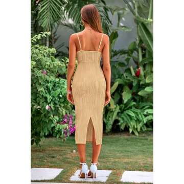 PRETTYGARDEN Summer Dresses for Women 2025 Sleeveless Textured Back Slit Sexy Cocktail Party Midi Bodycon Dress (Light Khaki,Medium)