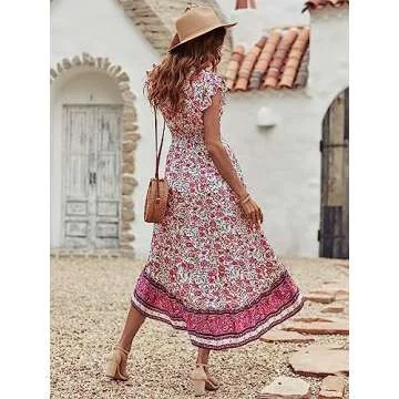 Show moreIntroducing the PRETTYGARDEN Summer Maxi Dress for Women—your ultimate fashion companion for those sun-kissed days! This enchanting dress is crafted from a soft, breathable, and lightweight fabric that promises all-day comfort, making it your go-to outfit for summer adventures. Featuring a classic V-neck and delightful short ruffle cap sleeves, this dress beautifully blends casual wear with elegant aesthetics. The charming boho floral print adds a touch of whimsy, while the empire elastic waist ensures a flattering fit for all body types. The pleated flowy high-low hem completes this stunning piece, offering a fashionable look that is both stylish and comfortable.