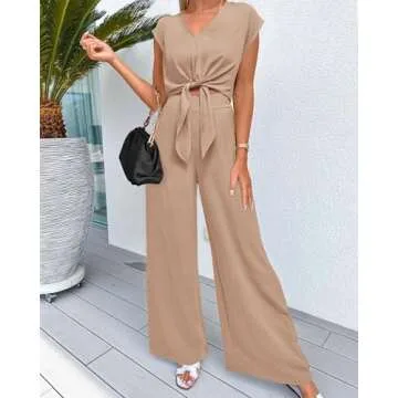 PRETTYGARDEN Vacation Outfits For Women 2025 Crop Tops Flowy Pant Sets 2 Piece Dressy Jumpsuits Summer Beach Wear(Solid Khaki,Medium)