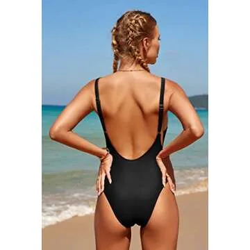 PRETTYGARDEN Women One Piece Swimsuit U Neck Tummy Control Swimwear Slimming Strap Backless Bathing Suit (Black,Large)