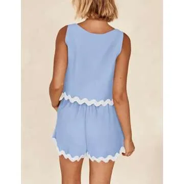 Show more Introducing the PRETTYGARDEN Women's 2 Piece Beach Vacation Outfits Casual Cropped Tank Top High Waist Shorts Set Tracksuit—your go-to ensemble for those warm, sunny days! Perfect for summer outings, beach trips, or casual gatherings, this two-piece set strikes the ideal balance between comfort and style. Crafted from a gentle and cozy fabric, it caters to your skin's needs, providing a soft touch that keeps you cool and refreshed throughout the day. The sleeveless tank top features a graceful cropped design, while the high-waisted shorts offer a flattering silhouette, ensuring you look chic and playful. With its availability in stunning colors like Sky Blue, this outfit is not just trendy but also versatile, making it an essential addition to your wardrobe.