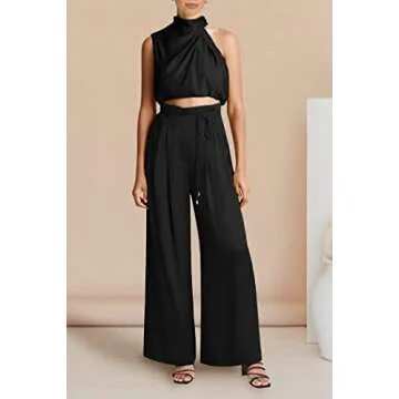 - Trendy Design: Explore the fashion-forward aesthetics of this 2 piece outfit featuring wide-leg pants and a sleeveless crop top, perfect for various settings.