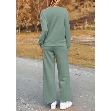 PRETTYGARDEN Women's 2 Piece Outfits Casual Long Sleeve Pullover Tops and Wide Leg Pants Knitted Lounge Sets (Bean Green,Medium)