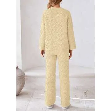 PRETTYGARDEN Women's 2 Piece Outfits Fall Fashion Clothes Quilted Long Sleeve Tops Wide Leg Pants Matching Lounge Sets (Beige,X-Large)
