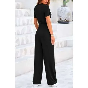 PRETTYGARDEN Women's 2 Piece Outfits Summer Tracksuit Lounge Sets Short Sleeve Crop Tops T Shirts High Waisted Wide Leg Pants (Black,Medium)