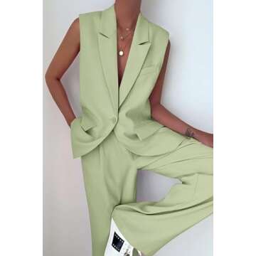 PRETTYGARDEN Women's 2 Piece Suit Sets Notched Lapel Blazer and Palazzo Pants Sets Work Office Clothes (Light Green,Medium)