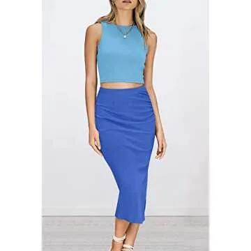 PRETTYGARDEN Women's 2 Piece Summer Outfits Crewneck Tank Tops Split Bodycon Midi Skirt Set (Light Blue_Blue,Medium)
