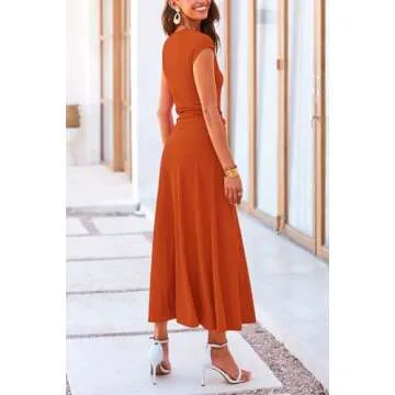 PRETTYGARDEN Women's 2 Piece Summer Outfits Dressy Casual Knit Short Sleeve Crop Top High Waist Midi Skirt Set (Orange,Medium)