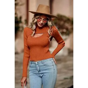 PRETTYGARDEN Women's 2024 Fashion Fall Clothes 2 Piece Cutout Tops Long Sleeve Mock Neck Rib Knit Winter Pullover Sweater (Rust Red,Medium)