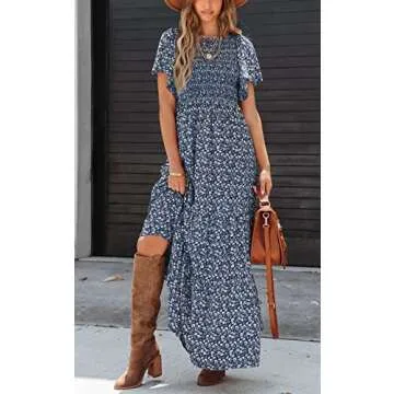 Show moreIntroducing the breathtaking PRETTYGARDEN Women's 2024 Summer Round Neck Short Flutter Sleeve Smocked Ruffle Floral Maxi Dress. This stunning maxi dress is a must-have addition to your summer wardrobe, designed to elevate your style while ensuring maximum comfort. Crafted from a soft, flowing fabric, it beautifully embraces your silhouette, allowing for graceful movement that makes it perfect for warm, sunny days. With its smocked bodice, this dress flatteringly accentuates your curves while providing the flexibility you need to enjoy any occasion with ease.