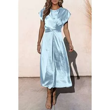 Show more Introducing the PRETTYGARDEN Women's 2024 Summer Satin Midi Dress, a timeless piece designed for the modern woman who values both elegance and comfort. This exquisite cap sleeve midi dress is made from high-quality satin fabric that feels soft against your skin, ensuring a pleasant wearing experience no matter the occasion. Featuring a gorgeous tie waist accent and an A-line silhouette, this dress not only flatters your figure but also exudes sophistication and class, making it a versatile addition to your summer wardrobe.