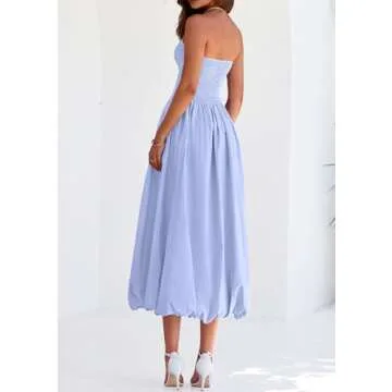 Show more Introducing the PRETTYGARDEN Women's 2025 Summer Strapless Tube Midi Dress – the perfect blend of elegance and comfort for the warmer months! This stunning dress is designed to keep you looking effortlessly chic while ensuring you feel comfortable all day long. Crafted from a soft and lightweight fabric, it is specifically tailored for those hot summer days, making it an essential addition to your wardrobe. The strapless design showcases your shoulders beautifully, while the stretchy smocked bodice accommodates various body shapes, ensuring a flattering fit for everyone.