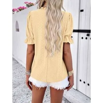 The blouse features a flattering crewneck design and delicate puff short sleeves, enhancing your silhouette effortlessly. Its lightweight nature, complemented by a built-in liner, ensures you stay chic yet comfortable without worrying about transparency. With various size options available, from S to XXL, there's a perfect fit for everyone who wants to embrace summer fashion with confidence!
