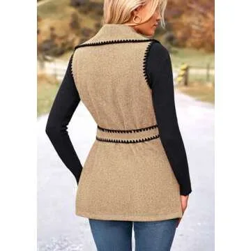PRETTYGARDEN Women's 2025 Tweed Vest Jackets Sleeveless Lapel Button Front Belt Color Block Winter Cardigan Outerwear (Khaki,Small)