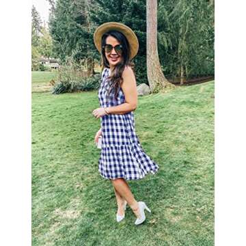 Elevate your summer wardrobe with the PRETTYGARDEN Women’s Casual Plaid Sleeveless Ruffle Sundress, a quintessential piece that combines comfort and style effortlessly. This beautiful dress showcases a delightful dark blue plaid pattern, perfect for those sun-filled days, whether at a picnic, brunch date, or leisurely stroll in the park. Made from lightweight, breathable fabric, it’s designed to keep you cool while exuding charm and elegance. The ruffled details add a feminine touch, while the round neck...