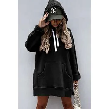 Show more Introducing the PRETTYGARDEN Women's Casual Pullover Sweatshirt, a versatile and stylish hoodie dress that redefines comfort. Crafted from superior fabric, this long sleeve pullover not only offers a soft touch against your skin but is also designed to keep you cozy and warm during chilly days. Available in sizes S (US 4-6) through XL (US 16-18), this hoodie dress provides ample stretch, ensuring a pleasant wearing experience no matter your body type. With its unique features such as a split hem and kangaroo pocket, it perfectly balances functionality with flair, making it an essential addition to your wardrobe.