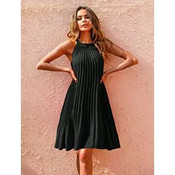 PRETTYGARDEN Women's Cute Halter Neck Sleeveless Mini Dress Solid Color Flowy Pleated Beach Dress Sundress
