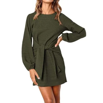 The dress features unique lantern sleeves that add a touch of elegance, while the stylish wide tie waist not only enhances your silhouette but also helps you adjust the fit to your specific needs. Whether it's accentuating your waist or providing a little more room, this design element allows for flexibility and comfort. Customers have reported how flattering this dress looks on diverse body shapes, solidifying its reputation as a must-have in your closet.