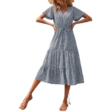 Show moreThe PRETTYGARDEN Women’s Floral Boho Dress is your ultimate summer staple, designed to blend style, comfort, and elegance effortlessly. Crafted from premium breathable polyester, this chic maxi dress brings a cozy and skin-friendly wearing experience, making it ideal for those hot summer days. The enchanting ditsy floral print adds a charming touch, while the short sleeves and ruffled hem create a delightful silhouette that you'll be eager to showcase. The high elastic waist A-line design not only highlights your waist beautifully but also allows for free movement, ensuring maximum comfort throughout your day.