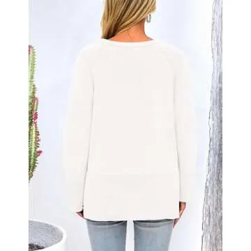 PRETTYGARDEN Women's Knit Spring Sweaters Long Sleeve Pullover Crewneck Split Hem Loose Oversized Tunic Fall Sweater Top (White,Small)
