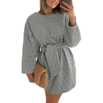 Show more Step out in style with the PRETTYGARDEN Women's Long Sleeve Dress, designed for the modern woman who values comfort without compromising on fashion. Crafted from a soft and lightweight fabric, this dress guarantees a cozy and skin-friendly wearing experience, perfect for all-day wear. The relaxed and loose silhouette not only allows for ease of movement but also exudes a casual elegance that makes it a fascinating addition to your wardrobe. The belted feature enhances your waistline while providing versatility, making this mini dress suitable for both casual outings and more formal occasions.
