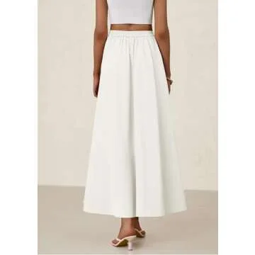 PRETTYGARDEN Women's Maxi Skirts 2025 Summer Trendy Ruffle High Waisted Casual Long Flowy Skirt with Pockets (White,Small)