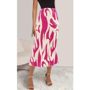 PRETTYGARDEN Women's Office Work Pencil Skirt Stretch High Waist Below Knee Pleated Long Skirts for Women Trendy Midi Skirt (Rose Red, Small)