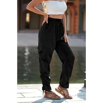 PRETTYGARDEN Women's Satin Jogger Pants Casual High Waist Long Lounge Pant Trousers with Pockets (Z_Black,X-Large)