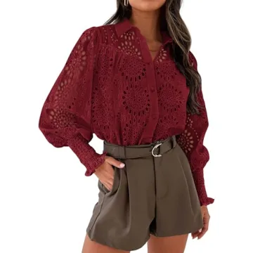 Show moreElevate your wardrobe with the PRETTYGARDEN Women's Spring Button Down Shirt, a stunning combination of sophistication and comfort. Crafted from premium soft cotton material, this blouse feels luxurious against your skin, allowing for breathability throughout the day. The shirt features exquisite eyelet detailing that radiates feminine charm, while its long puffed sleeves add a trendy element to your overall look. Available in a vibrant wine red, this piece effortlessly transitions from daywear to evening elegance—making it a staple for any fashion-forward individual.
