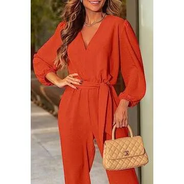 Show more Discover the ultimate blend of style and comfort with our exquisite jumpsuits for women, crafted by the finest quality fabric that offers a slight stretch for ease of movement. Perfectly designed for every occasion, these dressy jumpsuits are not just fashion statements but a testament to elegance and practicality. The long sleeves and V-neck add a touch of sophistication, making them suitable for both casual and formal events. Our jumpsuits feature a sleek wrap design with an elastic waist and belt, giving you a flattering silhouette while ensuring optimum comfort throughout your day.
