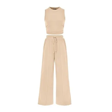 - Stylish Design: Features a chic crewneck tank top with a flattering waist-side ruched detail and wide-leg pants for a sophisticated silhouette.