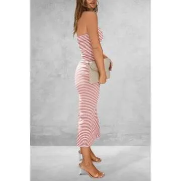 Show more Step into the spotlight with our exquisite Bodycon Maxi Tube Dress, a stunning piece by Pretty Garden that seamlessly blends elegance and allure. Made from super soft ribbed knitted material, this stretchy and comfy dress complements your natural curves while ensuring you look and feel fabulous at any event. The sexy tube design features a flattering fit with a stylish left side slit, which adds an element of intrigue to your ensemble, making it the perfect choice for wedding receptions, cocktail parties, or evening outings. This dress hugs your figure beautifully, creating a slim fit that accentuates your silhouette while maintaining a sense of sophistication.