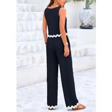 PRETTYGARDEN Women's Summer Casual 2 Piece Outfits Sleeveless Tank Crop Top Wide Leg Pants Sets Tracksuit (Navy,X-Large)