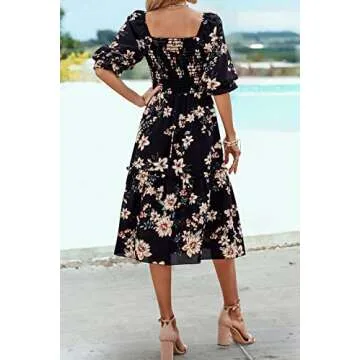 Show more If you’re looking for the ideal outfit that embodies elegance and comfort, the Summer Midi Dress for Women 2025 is your perfect choice. Made from lightweight polyester fabric, this dress effortlessly combines style with practicality, making it a must-have in your summer wardrobe. Its soft and flowy design ensures comfort during warm weather, allowing you to stay cool while looking chic. The dress features puff short sleeves adorned with ruffle cuffs, adding a touch of sweetness and femininity to your look. The elegant square neck design not only showcases your collarbone beautifully but also provides the option to wear the dress on or off the shoulder, giving you styling versatility.