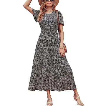 Show moreIntroducing the stunning PRETTYGARDEN Women's Summer Casual Short Flutter Sleeve Round Neck Smocked Waist Tiered Boho Floral Flowy Maxi Dress, an exquisite creation designed to bring out your inner elegance and charm. Made by the reputable brand Pretty Garden, this maxi dress features a captivating bohemian ditsy floral print that is both vibrant and eye-catching. The short flutter sleeves and elastic shirred waist enhance your natural curves, ensuring a flattering fit for every body type. Whether you’re dressing up for a special occasion or enjoying a casual day out, this dress promises comfort with its lightweight fabric and A-Line silhouette, allowing you to move effortlessly.
