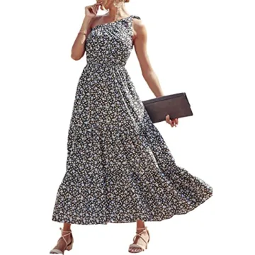 PRETTYGARDEN Women's Summer Floral Maxi Dress Knot One Shoulder Sleeveless Ruffle Flowy Boho Beach Wedding Guest Dresses