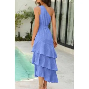 Show more Step into summer with confidence and style wearing the PRETTYGARDEN Women's Summer Floral Sundress. This delightful midi dress, crafted from lightweight, soft, and breathable fabric, is perfect for those sunny days ahead. The unique one-shoulder design sets this dress apart, while the tiered ruffles add an adorable flair, making it a **must-have** for any fashion-forward woman's wardrobe. The floral patterns come in various colors like Swiss Dot Blue, allowing you to express your personality effortlessly. Feel comfortable and chic whether you're at a beach picnic, a casual brunch, or a summer wedding.