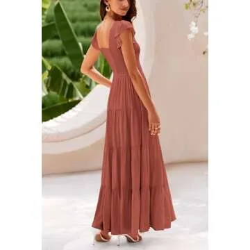 The flowy silhouette of this maxi dress gracefully moves with every step, allowing you to embrace your femininity effortlessly. Its beautifully draped design flatters all body types, featuring a stretchy smocked top that enhances your figure while providing a comfortable fit. Adorned with playful, ruffled cap sleeves, this sundress exudes a youthful vibe perfect for various occasions.