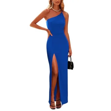Show more Step into elegance with the PRETTYGARDEN Women's Summer Formal Wedding Guest Dress featuring a stunning One Shoulder Spaghetti Strap design, perfect for any formal occasion. Crafted from high-quality, breathable fabrics, this high slit maxi bodycon dress strikes a beautiful balance between comfort and style. The invisible side zipper makes it incredibly easy to slip on and off, ensuring you look glamorous without any fuss. Available in a vibrant royal blue, it not only highlights your figure but accentuates your neckline and collarbone, making you the center of attention at weddings, proms, or cocktail parties!