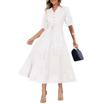 Perfect for a day at the beach, a romantic date night, or even the office, it transitions seamlessly from day to night wear. The exquisite puff sleeves enhance the dress’s appeal, providing a hint of femininity while maintaining a modest look. Create memorable moments in this delightful piece, whether at a summer party or a family gathering.