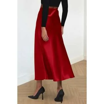 PRETTYGARDEN Women's Summer Midi Satin Skirt Dressy Casual High Waisted A Line Flowy Ruffle Elegant Party Skirts (Dark Red,Small)