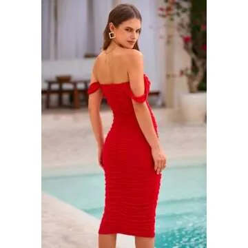 Show more This stunning Midi Dress is not just an outfit; it's a statement piece that elevates your wardrobe to new heights! Crafted from a soft, stretchy fabric, this dress ensures maximum comfort while elegantly hugging your curves. With its eye-catching designs, including options like off the shoulder and spaghetti straps, it’s perfect for a variety of occasions.
