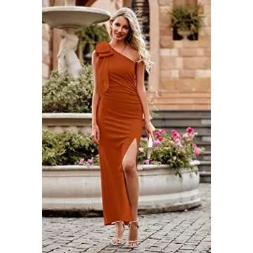 PRETTYGARDEN Women's Summer One Shoulder Formal Maxi Dress with Slit in Brown